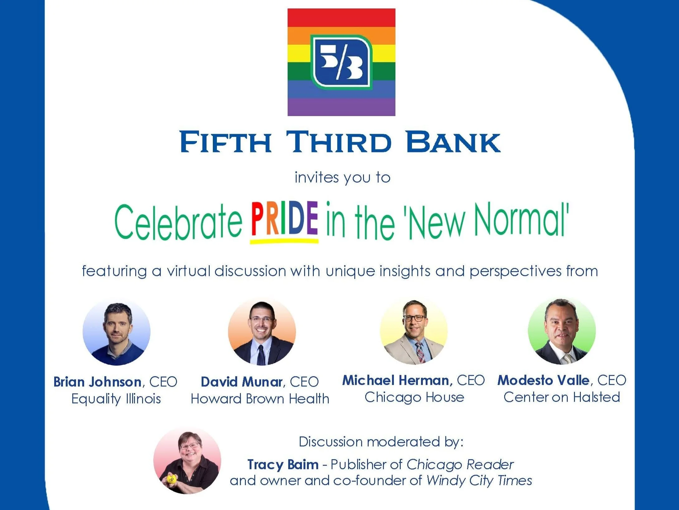 This event will feature a virtual discussion with unique insights and perspectives from Brian Johnson, CEO, Equality Illinois; David Munar, CEO, Howard Brown Health; Michael Herman, CEO, Chicago House; and Modesto Valle, CEO, Center on Halsted, with Chicago Reader Publisher and Windy City Times Owner and Co-Founder Tracy Baim moderating.